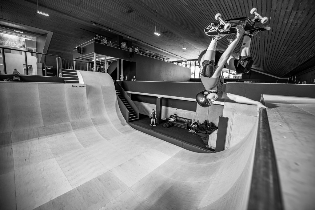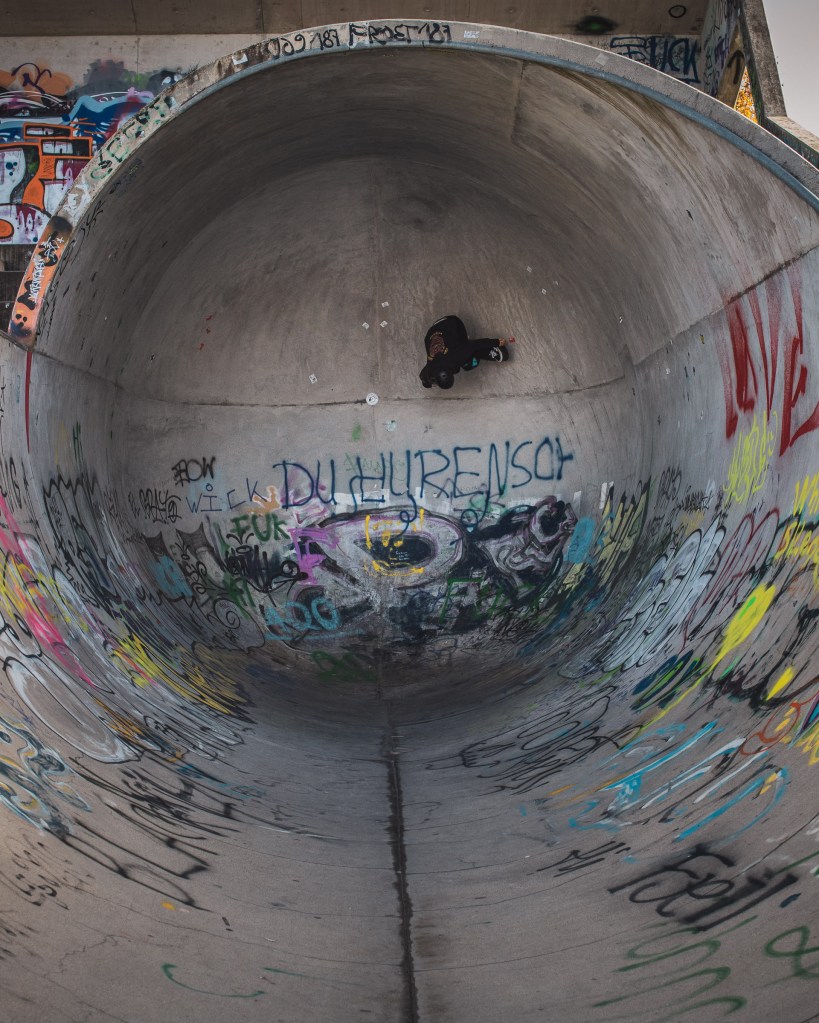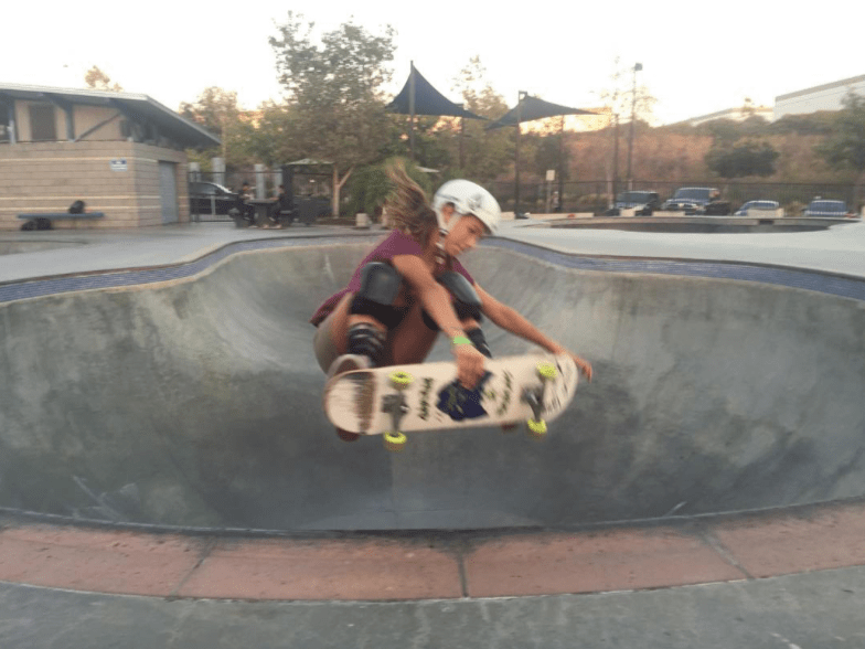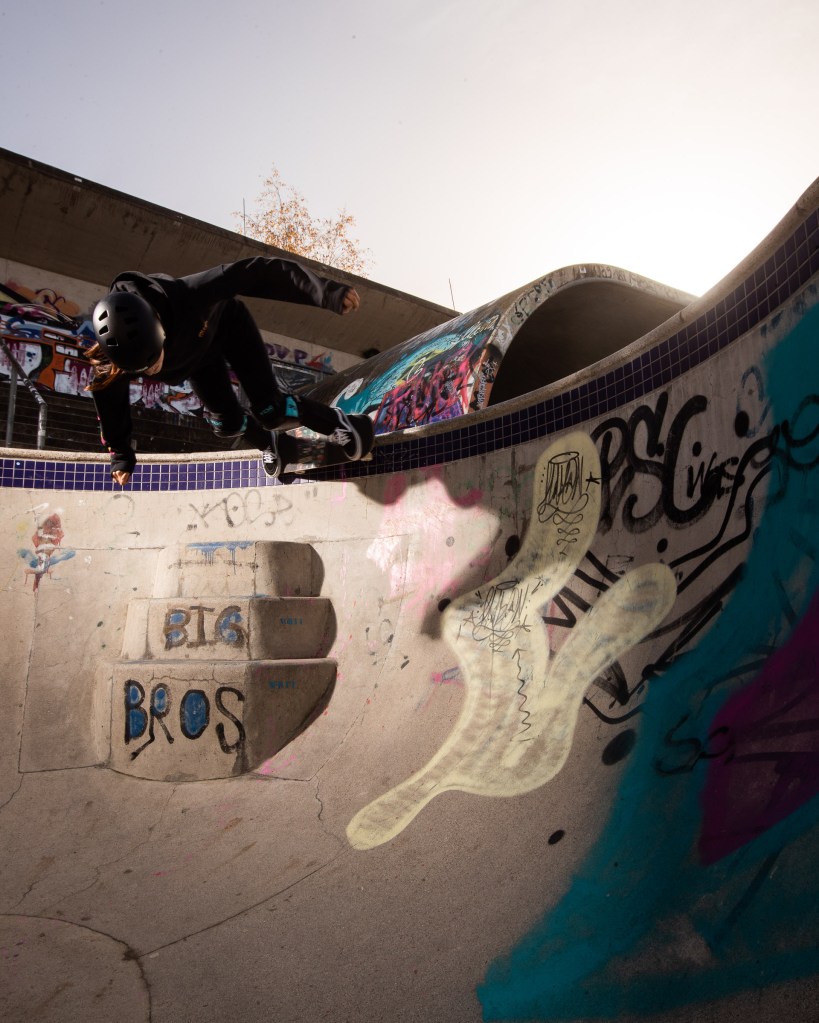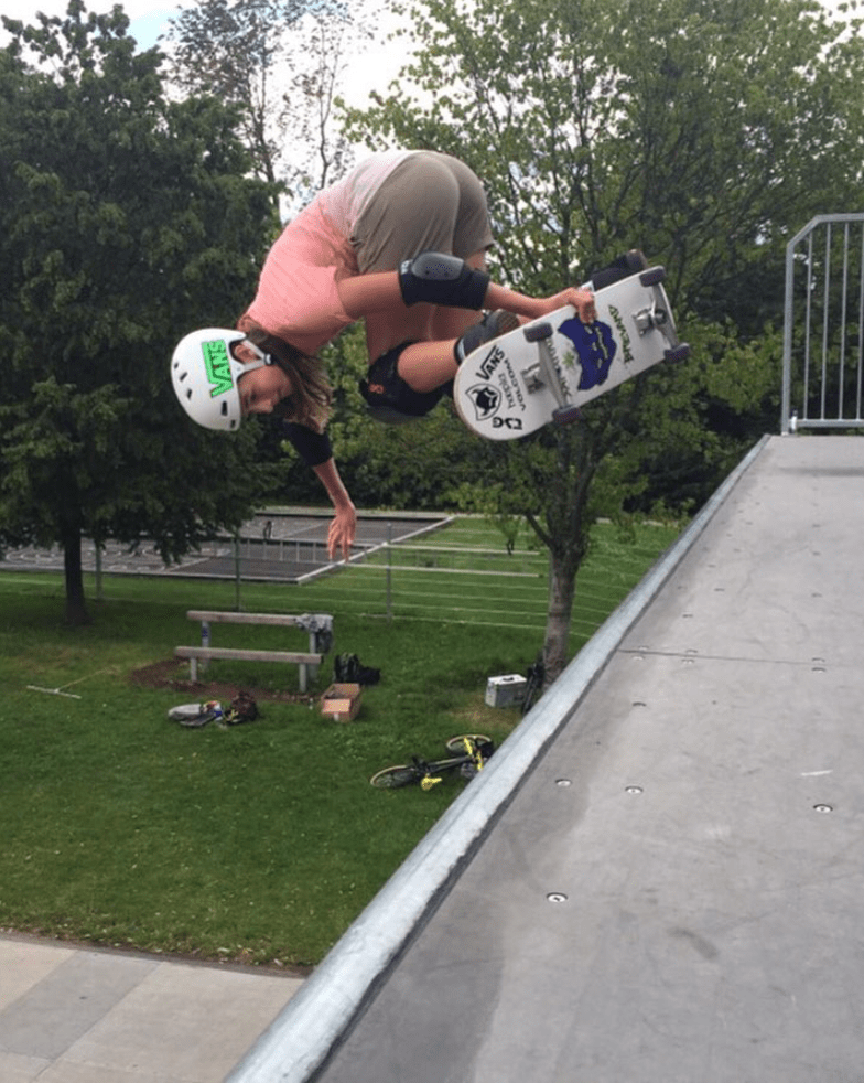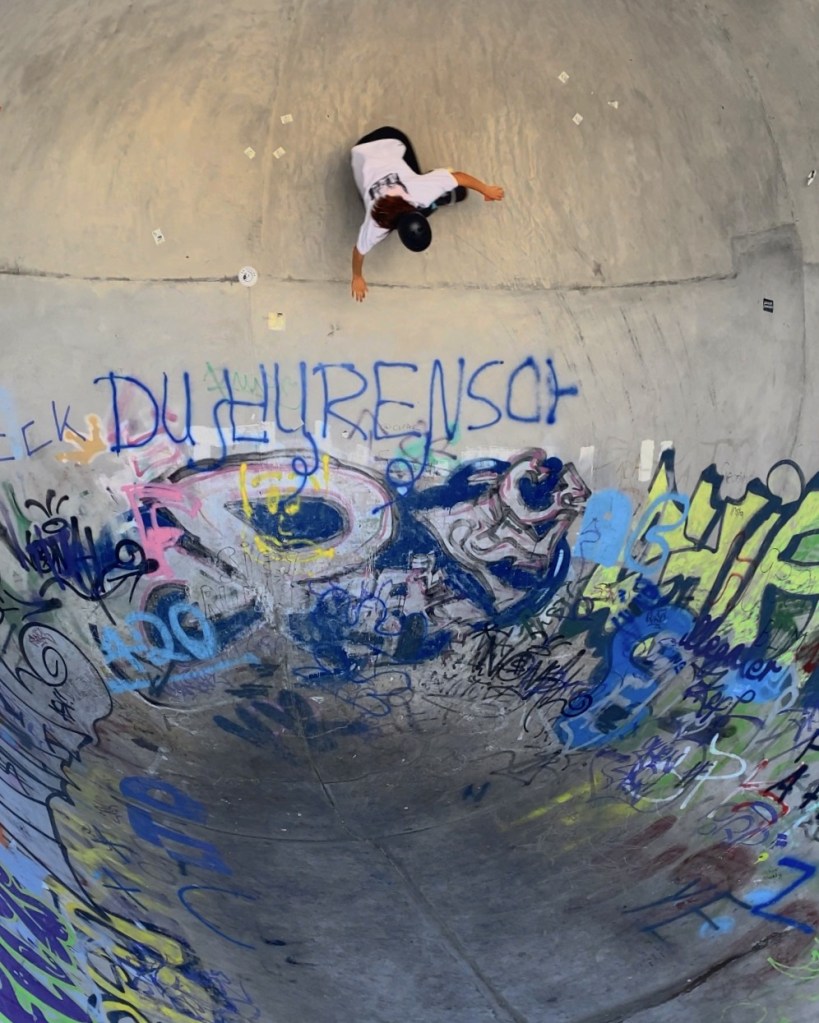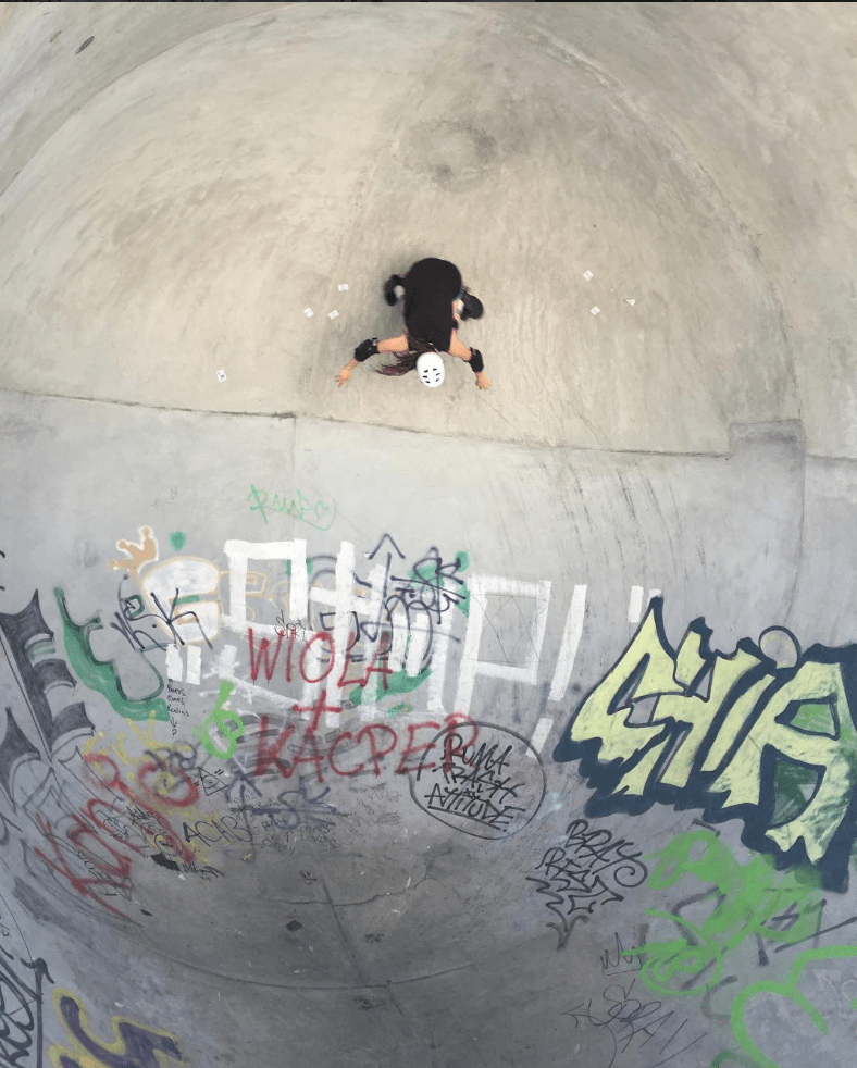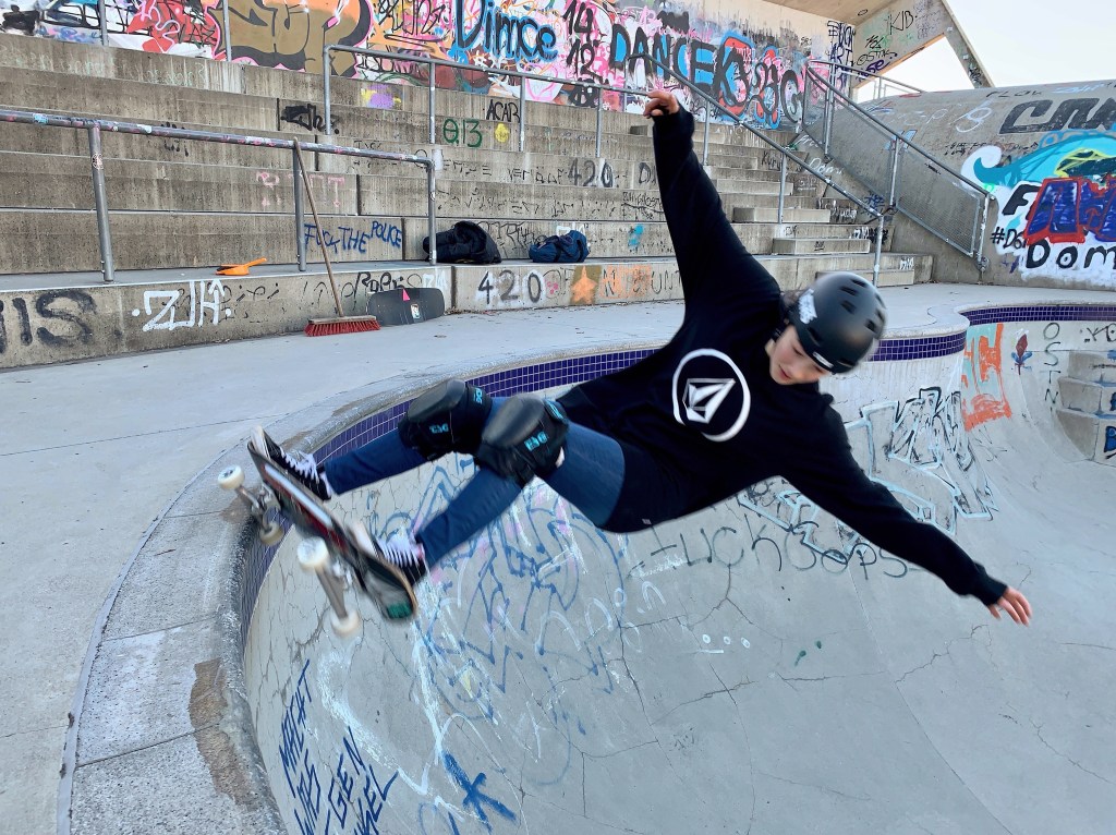 The first time I was on a skateboard, I was half a year old, so I’ve almost been skating my whole life. I like pools, mini ramps and vert ramps the most.